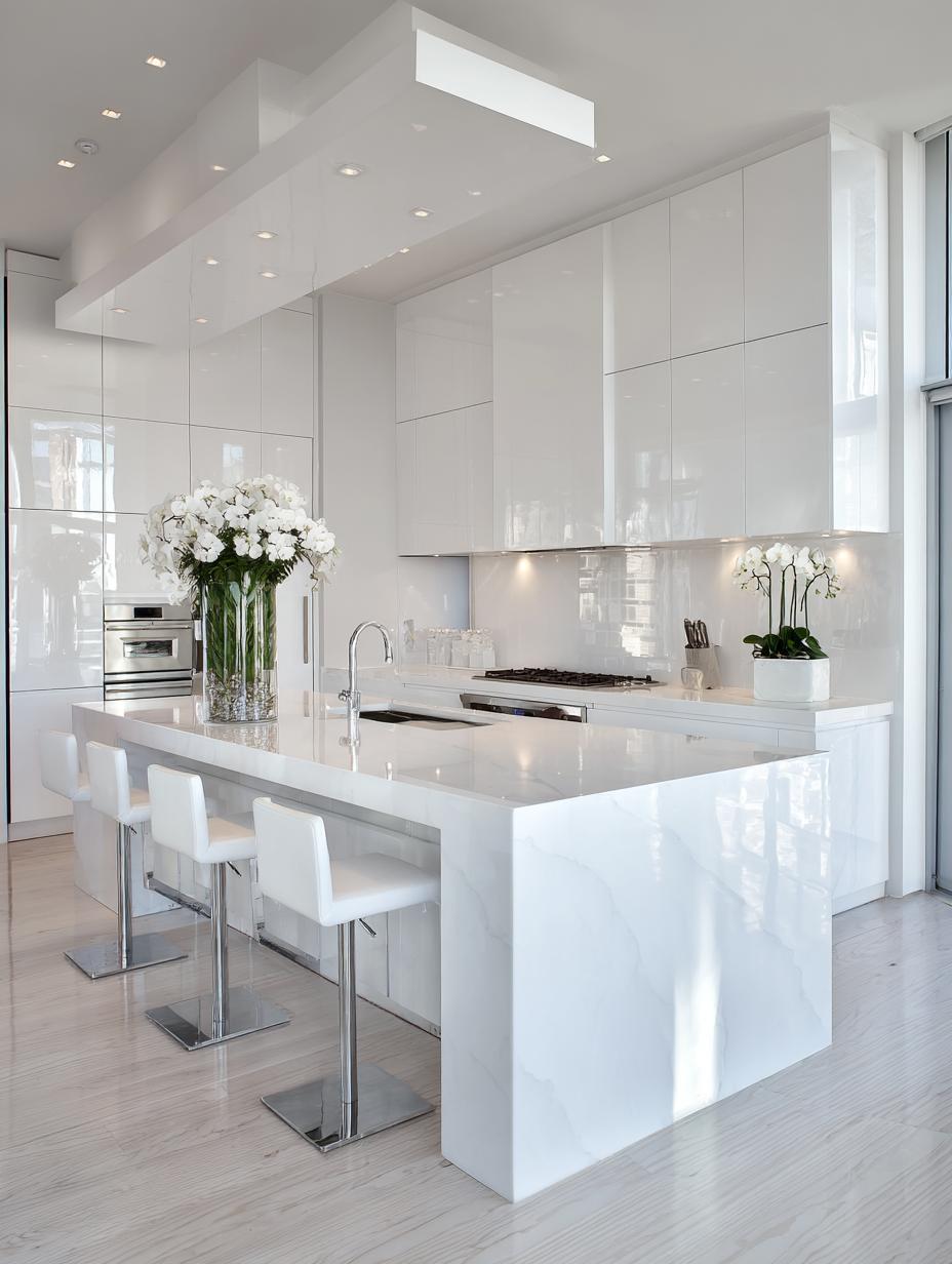 Ultra-Modern White Kitchen with Seamless Island Integration