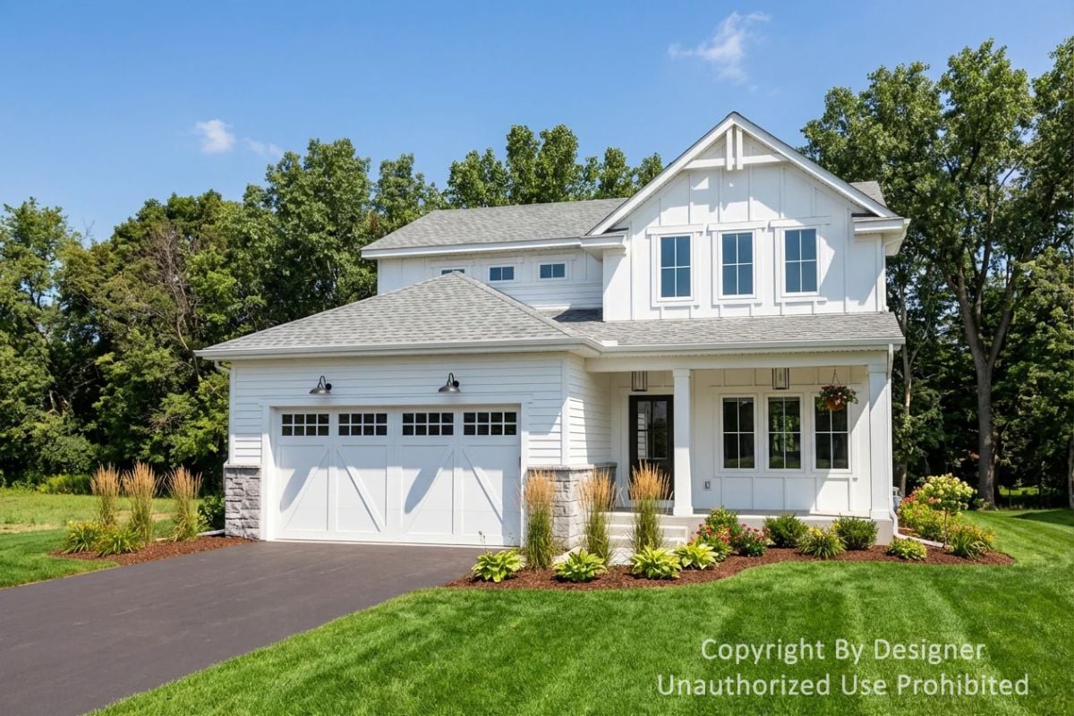 4-Bedroom Country Farmhouse with Open Living Space and 2-Car Garage (Floor Plan)