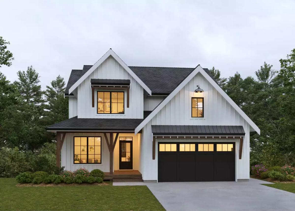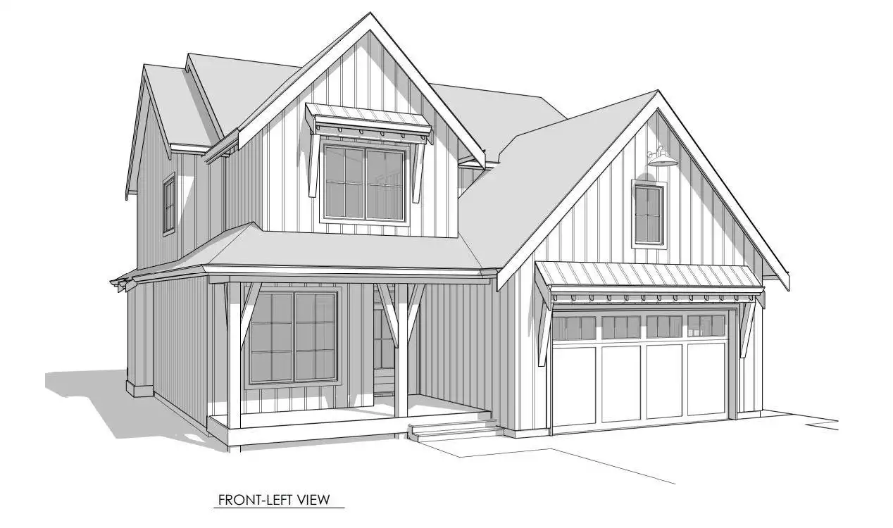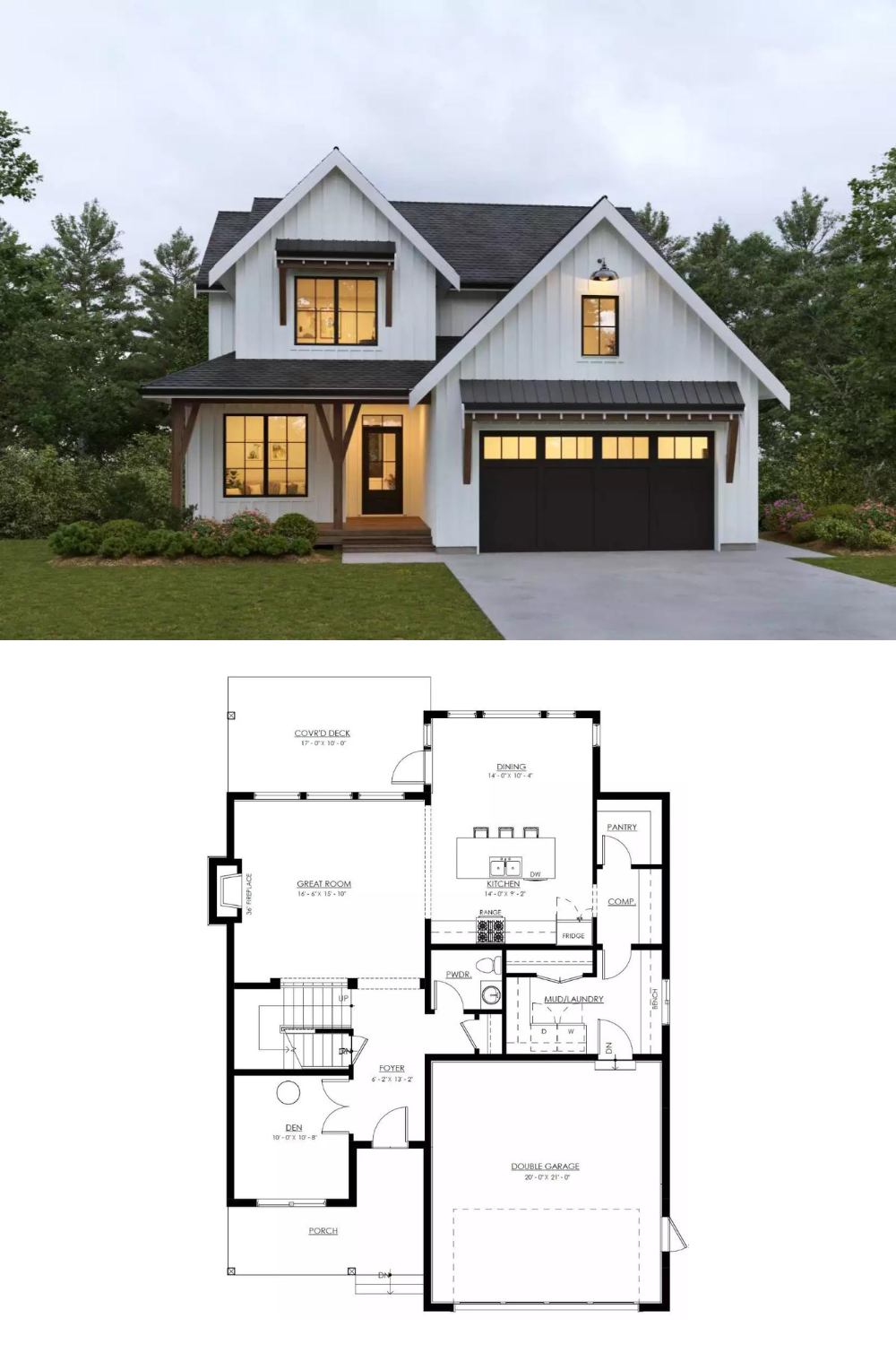 If youโre looking for a great farmhouse to build in a neighborhood, take a look at House Plan 8060. This classic gabled design packs everything you need into a relatively compact footprint perfect for subdivisions. Inside, youโll find 2,231 square feet, four bedrooms, and two-and-a-half bathrooms across two stories. The first floor includes a den off the foyer, a great room with a fireplace, and an island kitchen beside a sunny dining area. Thereโs also a sizeable laundry/mudroom coming in from the two-car garage, a computer desk, and a walk-in pantry to help keep the household organized. All four bedrooms are placed upstairsโthe master suite with its own five-piece bath and three secondary bedrooms that share a four-piece hall bath. House Plan 8060 makes a great choice for growing families thanks to this grouped-bedroom layout!